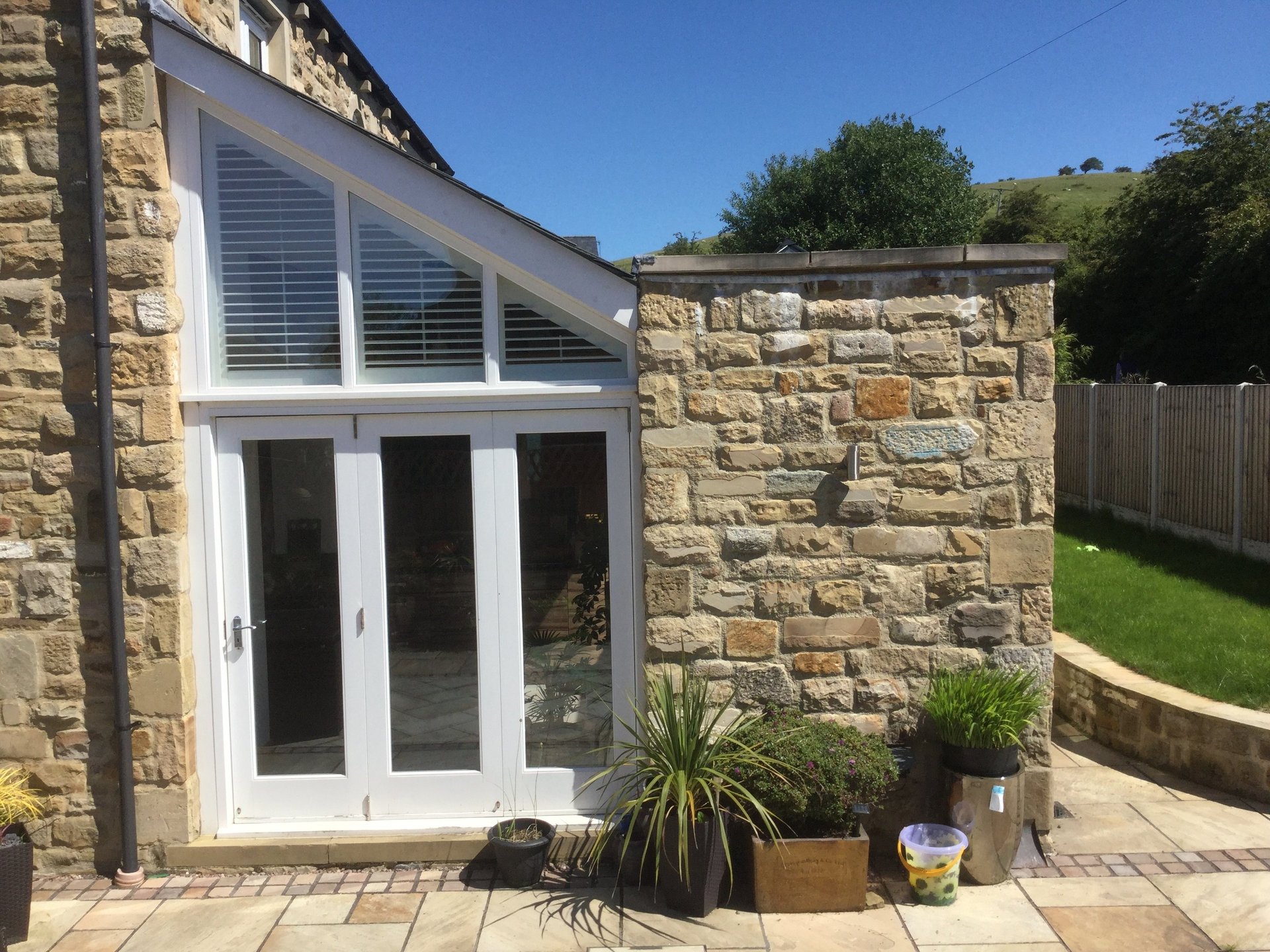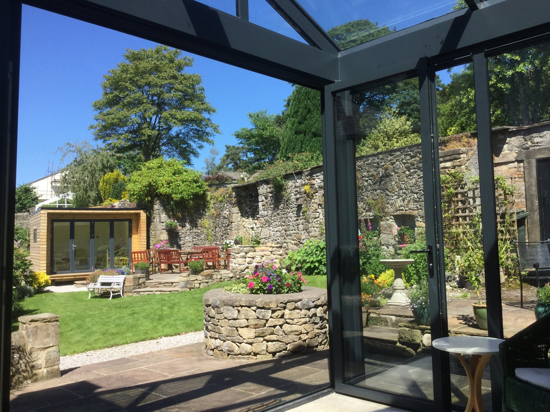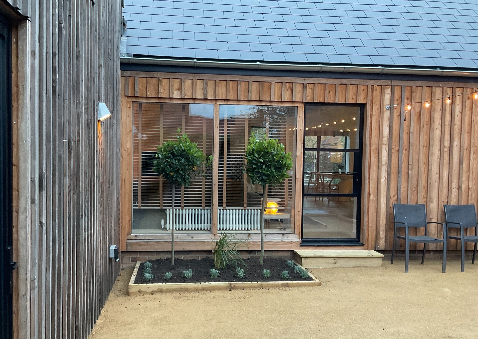 Market town centre location with walled garden. Former house and associated commercial store combined to create increased living space and fluid connection to outside. glazed lean to onto solid flank wall giving light to the dark interior space with big sky impact. Designed to mirror neighbouring roofscape with contemporary walled garden glass house aesthetic. completed 2015. design, planning and listed planning, building regulations and project management.