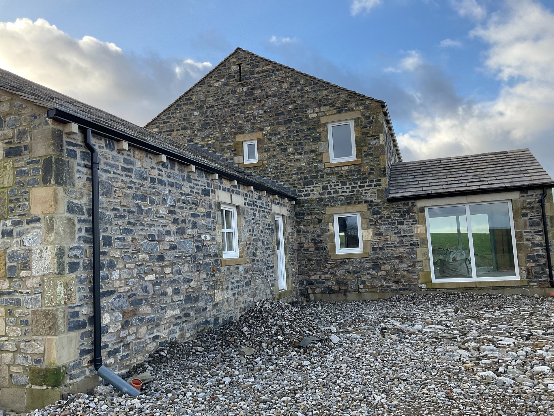 A family home, stone faced on SIPS structure. Passive performance with traditional appearance in countryside setting. one example of quite a few SIPS and timber framed buildings we have done in a traditional style. Completed 2024. Design, planning and building regulations.